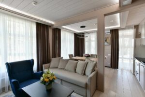 Проживание домашних животных (собаки и кошки) разрешается только в коттеджах и таунхаусах. Стоимость проживания: единоразово (от 1-3 суток) 2500 рублей, далее 700 руб/сутки.